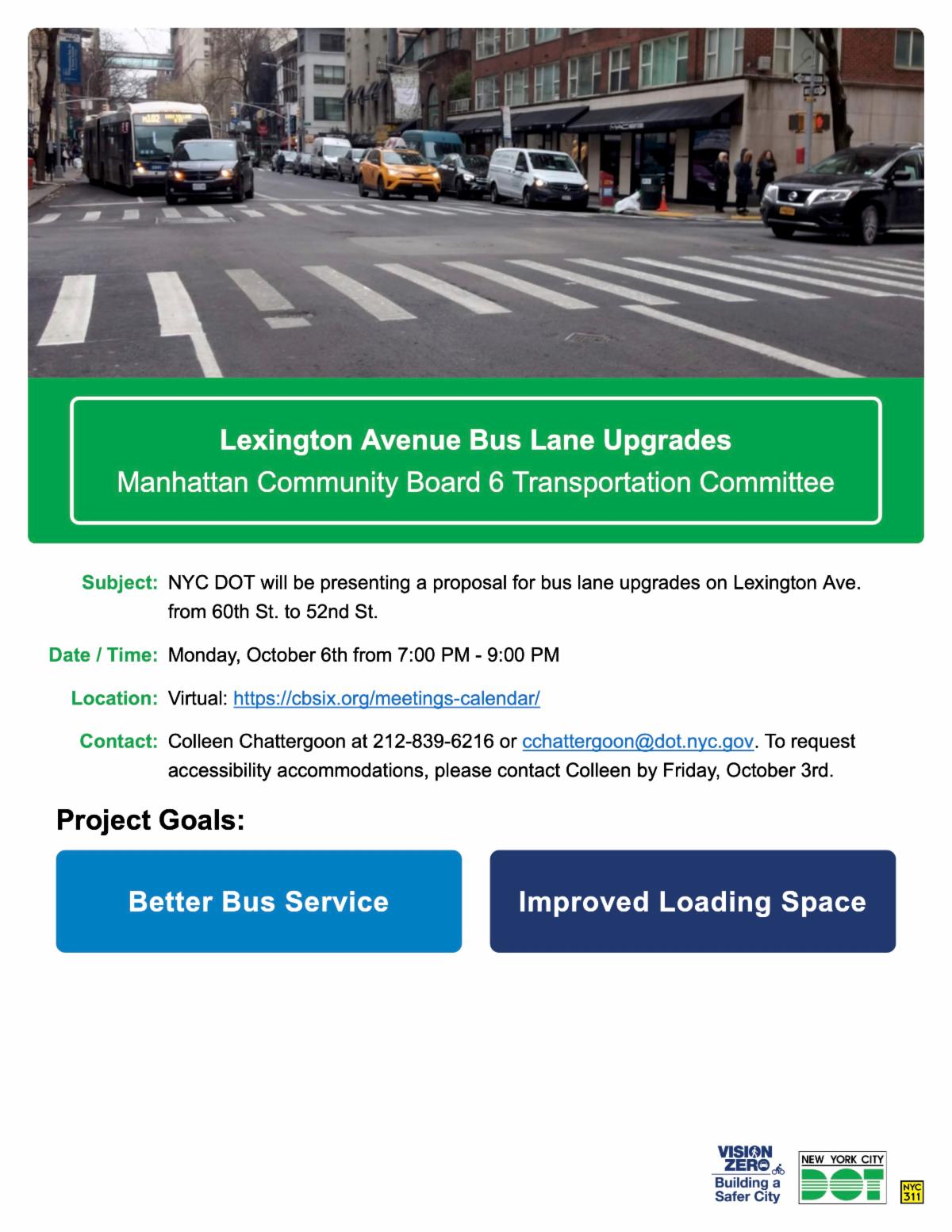 - Community Board 6 Meeting on Lexington Avenue Bus Lane Upgrades