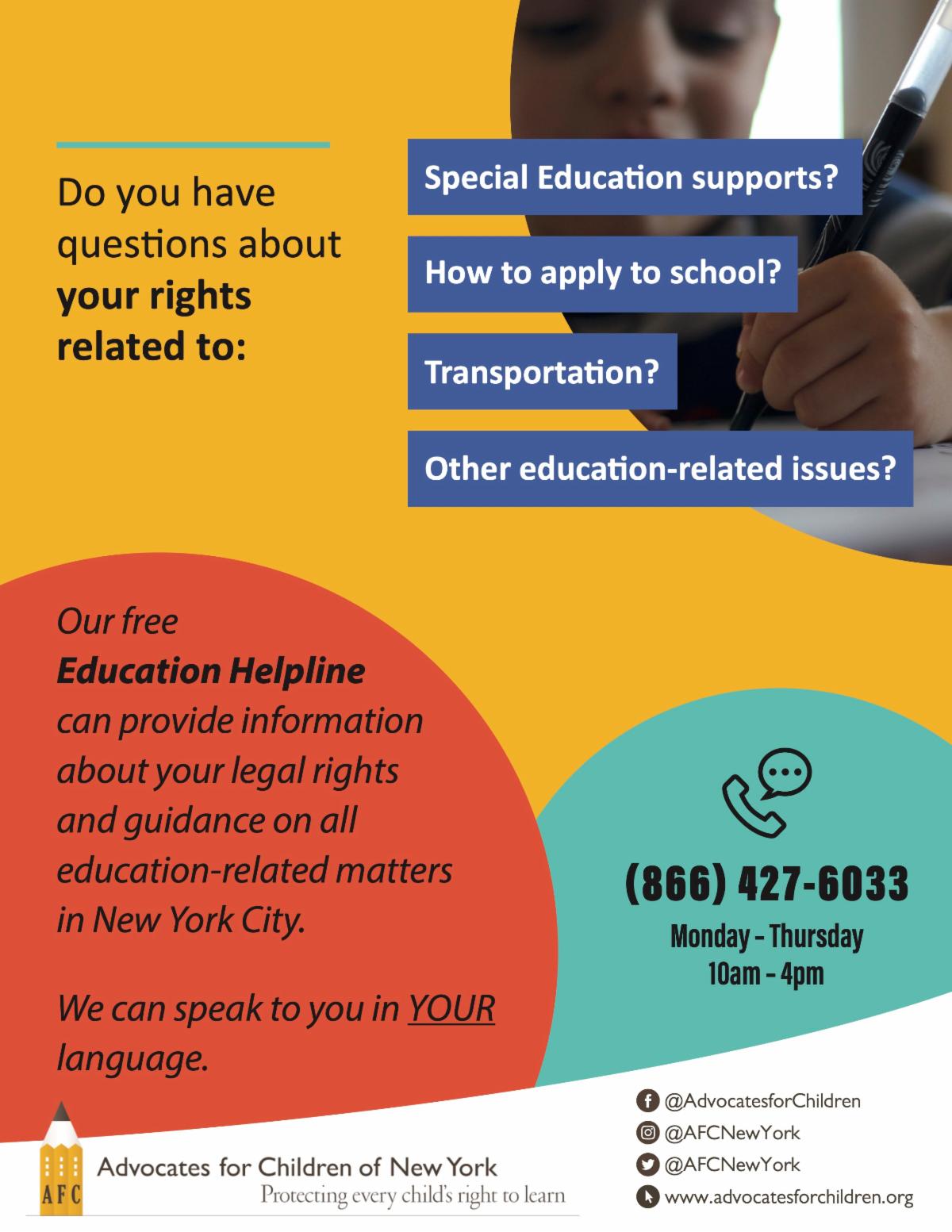 | | Advocates for Children Education Helpline | | Protecting and Supporting Immigrant Families | |