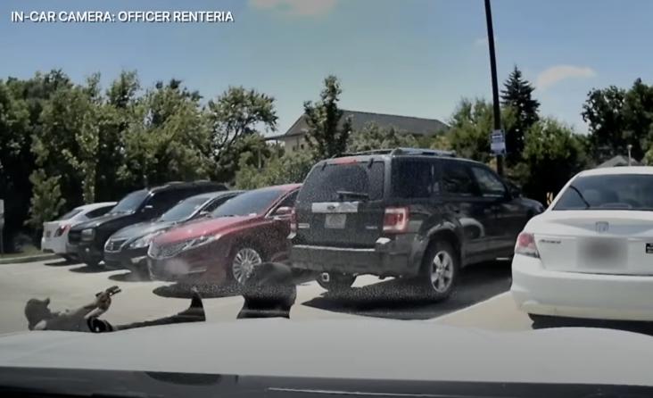 Newly released body camera footage shows vehicle theft suspects shooting and wounding an Indianapolis Metropolitan Police Department (IMPD) officer who was working to take them into custody, FOX 59 reported. The officer, identified as Officer Renteria, who was outnumbered four-to-one, was attempting to detain suspects connected to a stolen vehicle on July 29. Dash camera footage shows the officer following a vehicle through an apartment complex before it was pulled into a parking lot. As Renteria got out of his vehicle, one suspect can be seen fleeing the scene on foot as two others got out of the car. Renteria, now raising his gun, instructed the two other suspects to raise their hands. Both initially complied, leading him to begin taking one of the suspects into custody. As Renteria worked to get one suspect onto the ground, another suspect climbed out of the vehicle. As he did, he appeared to hand a gun to another suspect. That suspect then raised the gun and began firing shots at Renteria. Renteria returned fire from the ground as all three remaining suspects fled. Renteria was struck three times, with a fourth bullet hitting his ballistic vest, which prevented a potentially fatal injury, according to the report.