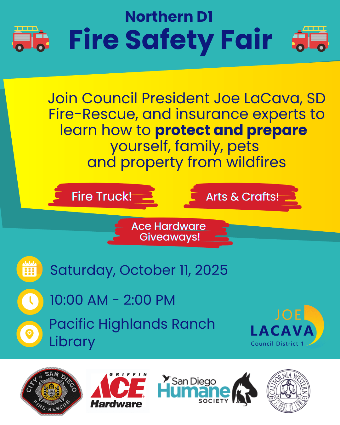San Diego residents must plan and prepare for wildfire. That's why Council President Joe LaCava invites you and your neighbors to learn how to protect yourself, family, pets, and property from fires.