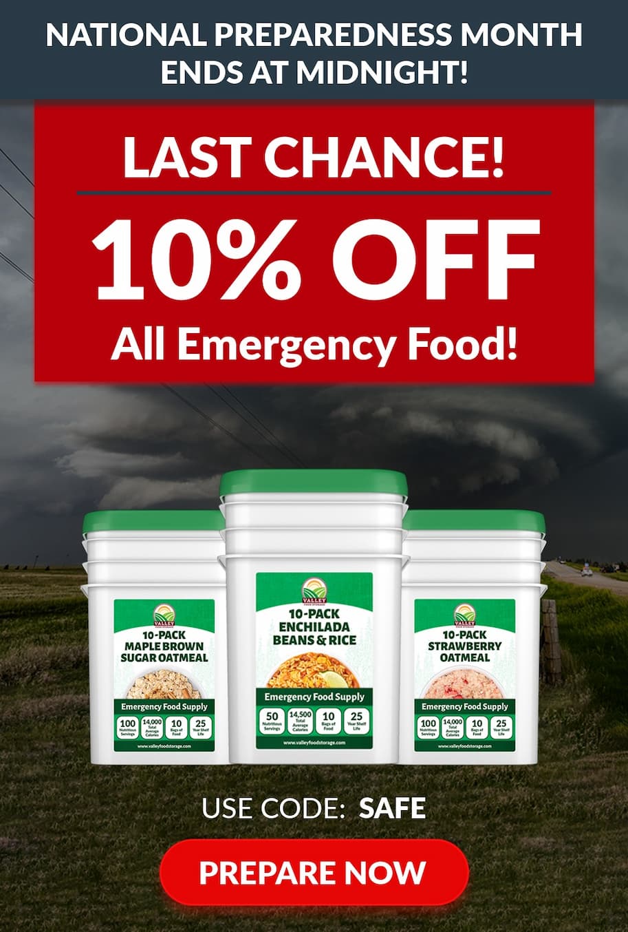 P.S. Midnight tonight. That's it. That's all you get. After that, you'll see Valley Food Storage emails with full prices and think "I should've acted." Don't be that person.