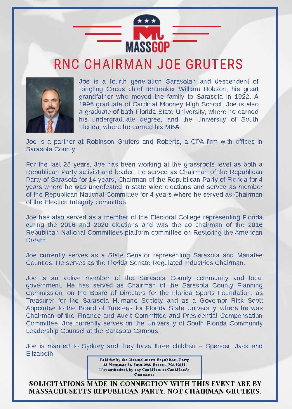 You're invited to a huge reception welcoming RNC Chair Joe Gruters to Massachusetts!