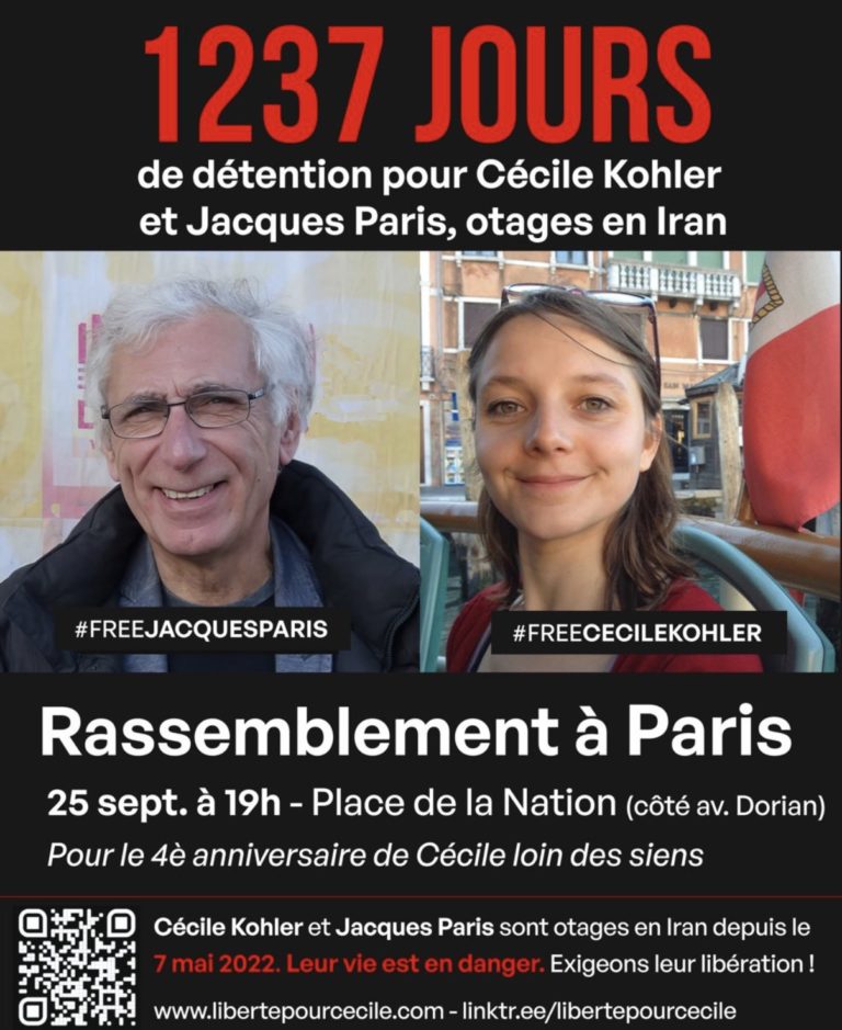 Des rassemblements étaient organisés ce jeudi 25 septembre, à Paris et partout en France, pour soutenir et appeler à la libération de Cécile Kohler et Jacques Paris, enseignants et otages français très injustement détenus en Iran depuis le 7 mai 2022, faussement accusés depuis peu par le régime iranien d’être des espions pour Israël. François […]