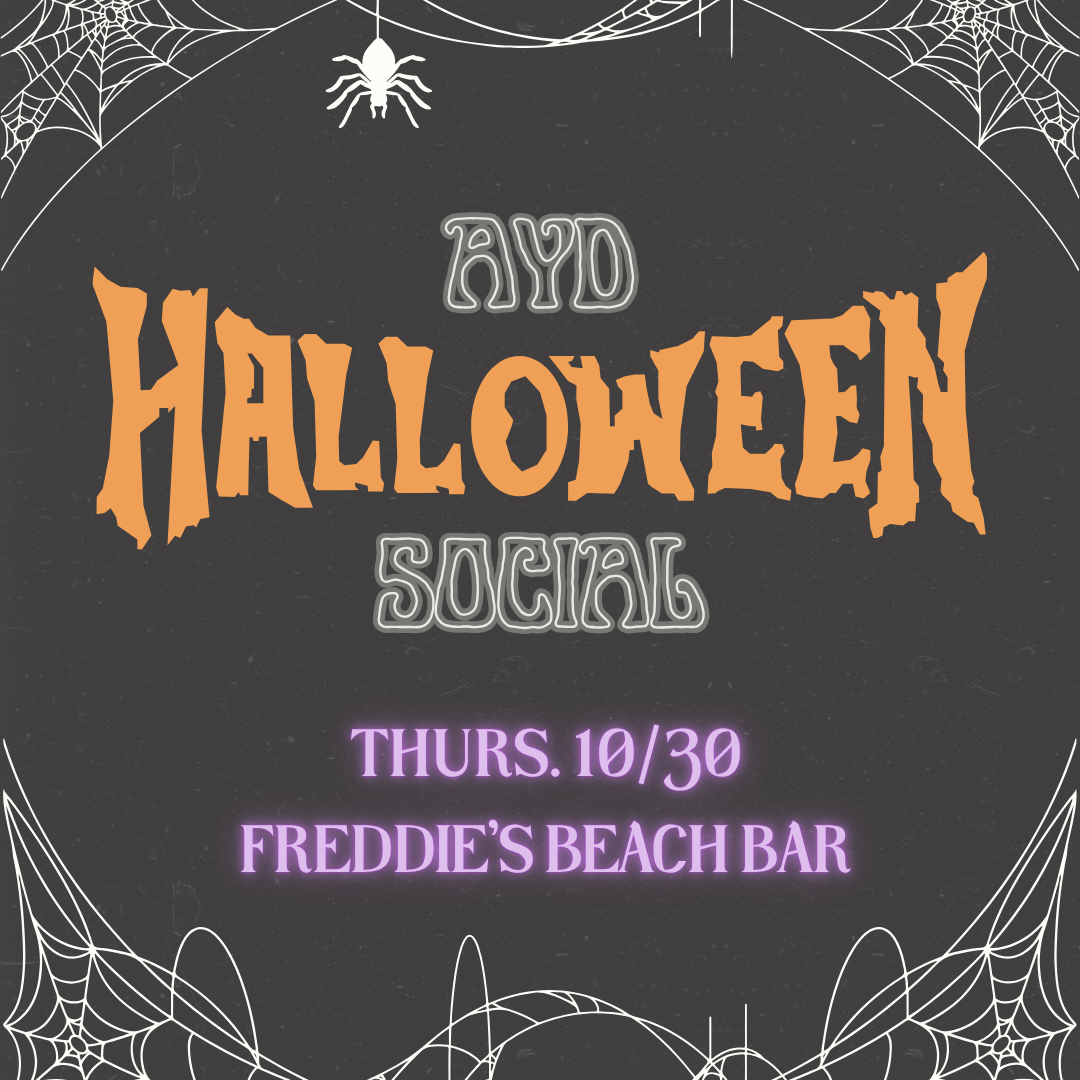 AYD Halloween Social 🎃 Thursday, October 30 | 7–9 PM Freddie’s Beach Bar, 555 23rd St S, Arlington, VA Join us for a night of fun, friends, and Halloween vibes at Freddie’s Beach Bar! Costumes are encouraged (but optional). Stick around for karaoke starting at 9 PM if you’re up for more fun! 👉 RSVP here!