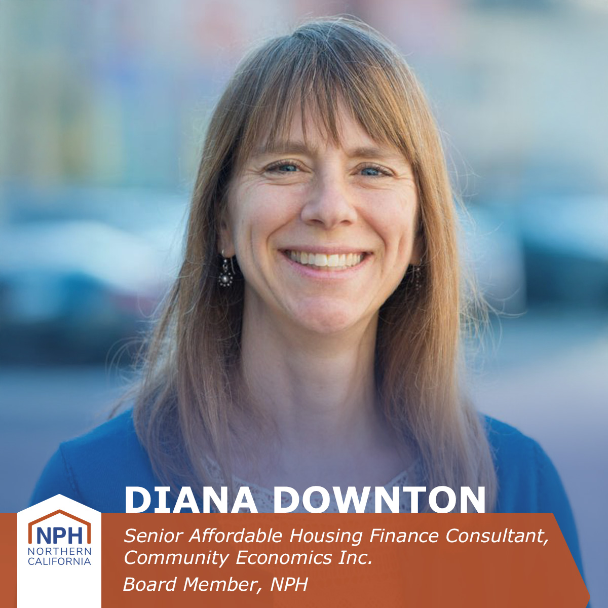 | The NPH Board continues to play a vital role in helping move our collective work forward and deserves a moment in the spotlight! Join us in celebrating Diana Downton, Senior Affordable Housing Finance Consultant at Community Economics Inc., and NPH Board Member! Diana joined Community Economics Inc. in 2014, bringing with her 14 years of previous experience in affordable housing development, advocacy, and local government housing finance. Prior to joining CEI, she worked for the City of Oakland’s Housing and Community Development Department, serving as the lead staff for the City’s affordable housing development Notice of Funding Availability (NOFA) process, and providing financing for a wide variety of affordable housing rental and ownership projects, including new construction and rehabilitation of family, senior, and special needs housing. Diana joined the NPH Board in 2023 and is a valued member of the Board. Thank you for your work as an NPH Board Member! |