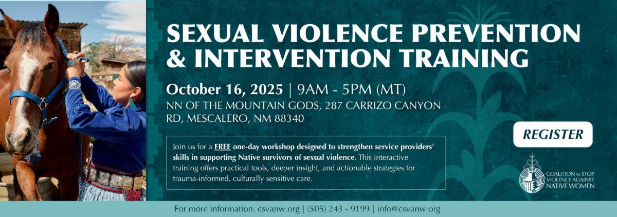 Today, CSVANW leads with kinship, culture, and innovation. We train hundreds of advocates, support survivors, and help shape policies that protect Native women and children in New Mexico and beyond.