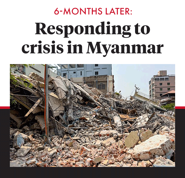 Over 3,800 lives were lost and 5,000 people were injured as infrastructure and homes were reduced to rubble across Mandalay, Sagaing, and Magway. Even before the disaster, Myanmar faced a dire humanitarian crisis, with nearly 20 million people in urgent need of aid and 3.2 million people displaced internally. A decline in international humanitarian funding had already made survival even harder. The earthquake massively compounded existing needs, striking the heart of an area already sheltering displaced civilians — many of whom have endured years of conflict and economic hardship. Read below or check out this web article to learn more about our long-term work in Myanmar and how we’re helping communities recover in the aftermath of the earthquake.