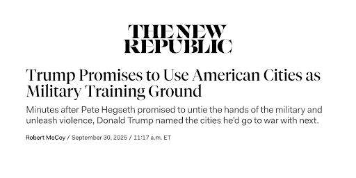 Using Democrat controlled cities as training grounds for our military? Trump has gone completely mad. He is drunk with power, foaming at the mouth to use violence and repression on his political opponents. We cannot afford to give him any more power or else we may never have an election in America again.
