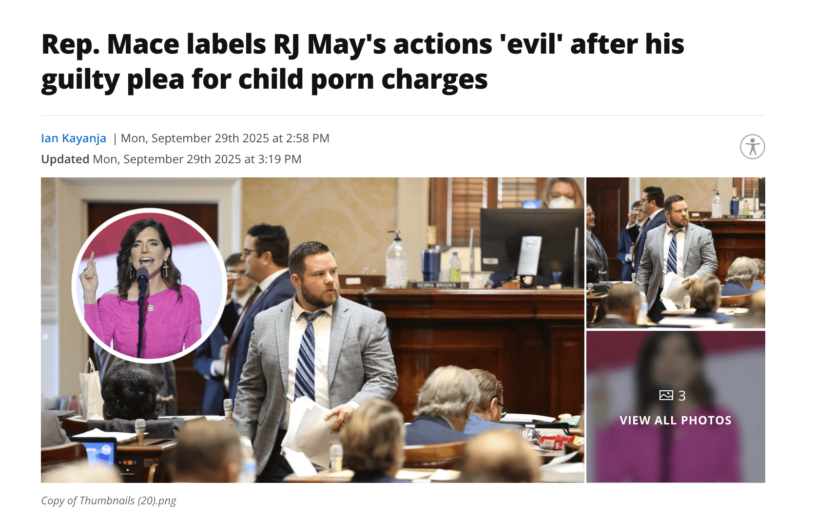Our office stands ready to assist all constituents in need of federal casework support. Residents are encouraged to contact our Charleston or Beaufort offices directly, or to visit Mace.house.gov/constituentservices for additional information and assistance. | We released the following statement on the Charleston County magistrate judge James B. Gosnell Jr., who is facing charges in connection with sexually explicit images of children: “The allegations against Judge Gosnell are sickening. Anyone who preys on children is a monster, and when the accused is a judge entrusted to uphold the law, the betrayal is even more vile. Our justice system must send a clear message: zero tolerance for those who exploit women and children. Protecting the most vulnerable in our community is not optional, it is the first duty of government. We wholeheartedly support the death penalty for child rapists," said Congresswoman Mace. "Federal investigators deserve recognition for acting quickly to stop this predator and to identify potential victims. We will not rest until every child is safe from abuse and every abuser is held accountable to the fullest extent of the law.” | HUGE WIN IN COURT:  Sanctions Against Attorney Barrett Brewer And Patrick Bryant For Misconduct In Fake Blackmail Court Case  South Carolina attorney Barrett Brewer has been sanctioned for misconduct tied to the GLT2 lawsuit - a case Patrick Bryant filed to harass and defame his victims while he is the target of an active and ongoing SLED investigation. The order details how Bryant, GLT2 and his attorney, Brewer, knowingly issued improper subpoenas and conducted an unauthorized deposition, actions the judge said violated South Carolina’s rules of civil procedure. In other words, a severe abuse of the court process. Rep. Mace welcomed the ruling, calling it “a clear message that the courts will not tolerate harassment or abuse of process. This isn’t about a lawyer making a simple mistake. This is about Bryant and his attorney Barrett Brewer weaponizing the legal system to harm victims and intimidate witnesses,” said Rep. Mace. “The judge looked at the facts in this case and came down on the side of truth and justice for all.” Mace added, “I look forward to pursing all available legal avenues to hold these guys accountable for making up all sorts of wild lies, for the fake news headlines that will cost them dearly. I’m fighting against the weaponization of the same justice system that tried to take down Donald Trump as it tries to take me down too. And, like Trump, I hope they have saved up for this fight, cause I’m coming for them. I won’t back down.”  Read the full release here. | 💬 Need help with a federal agency? Contact our district office: 📞 (843) 352-7572 |📍 900 Island Park Drive Suite 260, Daniel Island, SC 29492 | Constituent Spotlight: Deputy Chief Jimmy Townsend | Deputy Fire Chief Jimmy Townsend of the Moncks Corner Rural Fire Department passed away in the line of duty at the age of 55. For more than three decades, since beginning his service in 1990, he dedicated his life to protecting families across Berkeley County. His service embodied the very best of public duty, and his legacy will live on in the countless lives he touched. We extend our deepest condolences to his family, friends, and the entire Moncks Corner firefighting community. May he rest in peace. | Rep. Nancy Mace Member of Congress | |