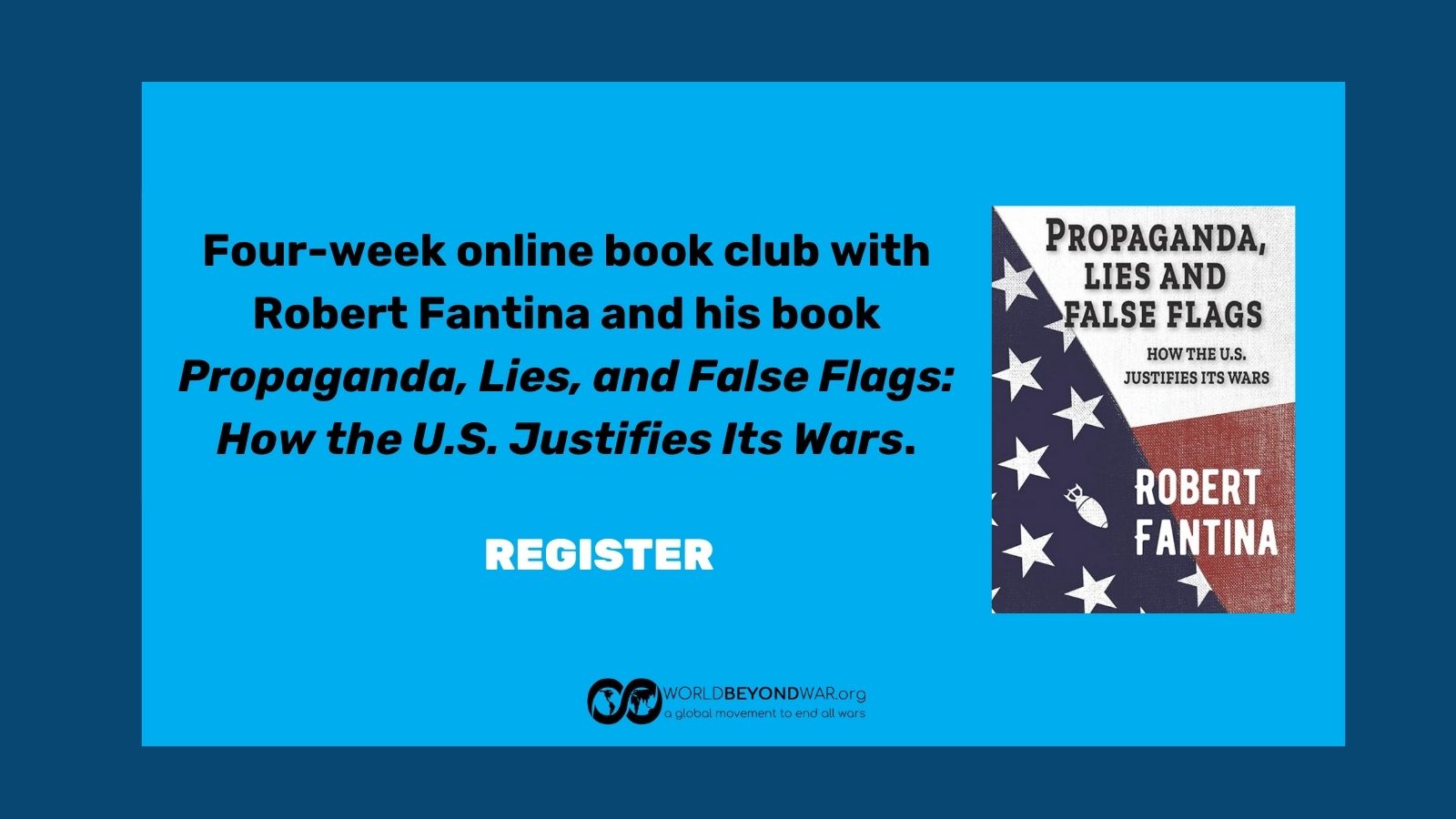 In November, 2025, World BEYOND War will be holding a weekly discussion each of four weeks of the book Propaganda, Lies and False Flags: How the U.S. Justifies Its Wars with the author Robert Fantina.