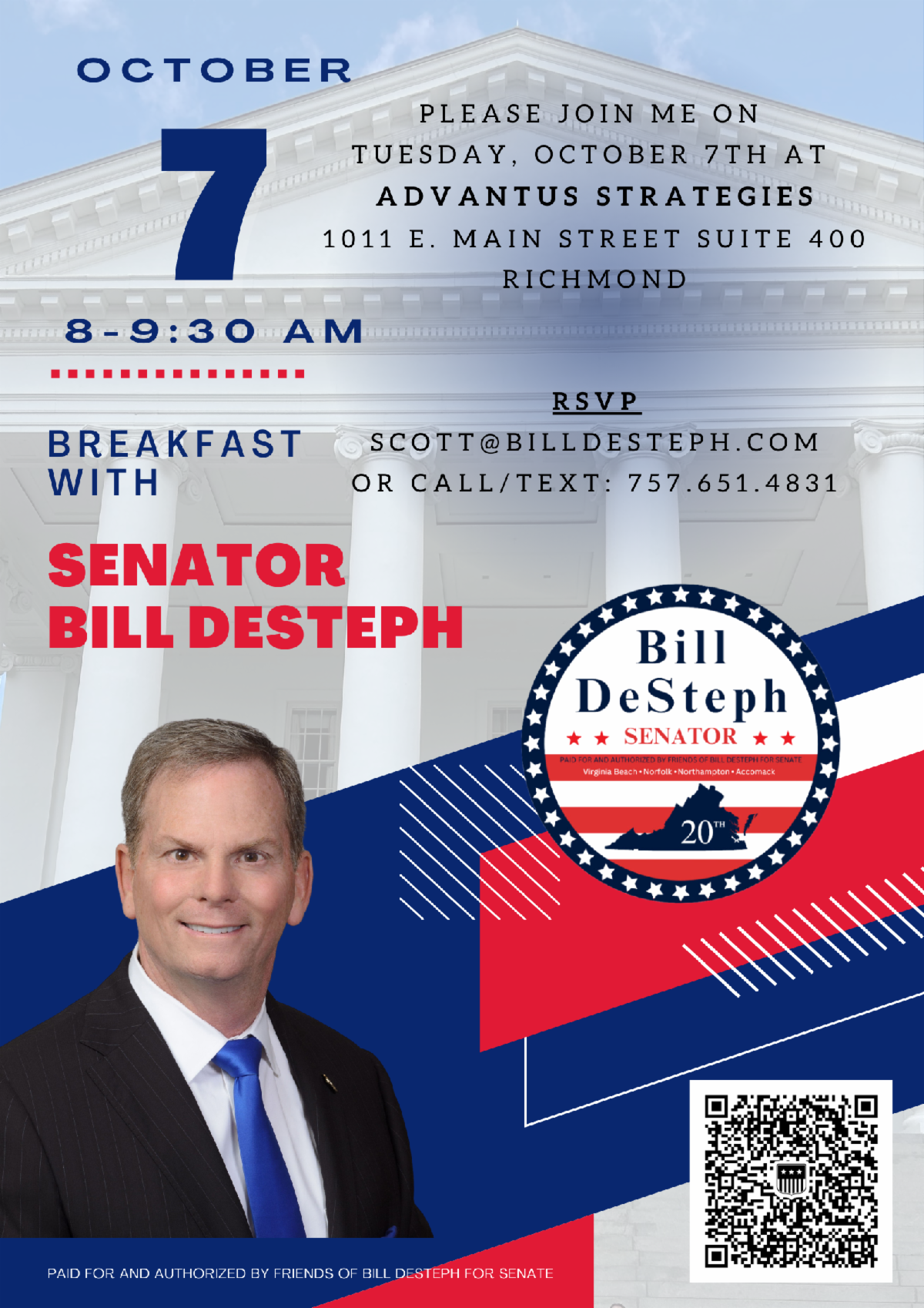 I wanted to send out one final reminder and invitation to you about my upcoming fundraising breakfast in Richmond on Tuesday.