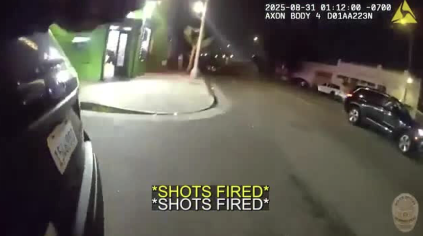 Newly released bodycam footage shows a suspect opening fire at LAPD officers inside a liquor store, leading to a shootout with police, KABC reported. The Aug. 31 incident began when two officers attempted to detain a man they believed was concealing a firearm, according to the report. Body camera footage from the officers involved and surveillance footage shows the officers entering the store and speaking with a man near the entrance. The conversation cannot be heard because of the body camera’s two-minute audio buffer. “I don’t have no weapons, sir,” the man can be heard saying as the camera audio begins. As an officer reached out to grab the man’s arm, the man resisted, running toward the back of the store. As officers pursued the man, the man can be seen producing a gun from a pocket or waistband. Shots can be heard as the officers turn to retreat. They called for backup, exited the store and took cover behind a cruiser. The suspect can be seen on surveillance footage chasing after the officers, firing shots at them as he ran toward the exit of the store, visibly wounded. The suspect fled but was later found hiding behind a parked car, wounded in the arm. Police recovered an unloaded 9mm handgun with a high-capacity magazine under a nearby vehicle, according to the report. The liquor store, a patrol car and other nearby vehicles were damaged by gunfire.