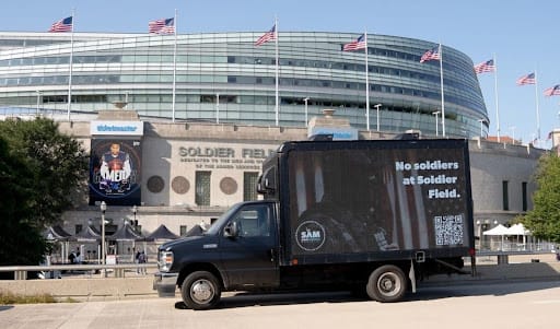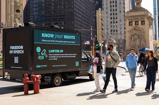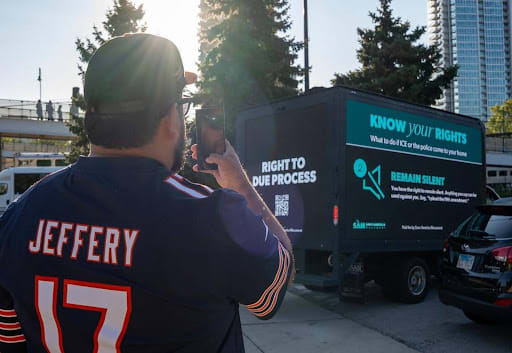 Deployed trucks across neighborhoods hit by ICE activity, circled Trump Tower, and set up outside Soldier Field on game night to broadcast a simple warning: “ICE is coming. Protect your community.”