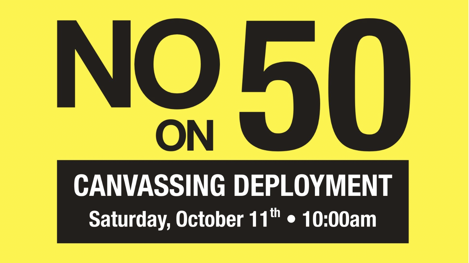 Join us for this volunteer canvassing deployment event as we get out into our neighborhoods, knock on doors, and talk directly with voters. Together we will educate voters on the TRUTH about Prop 50 — and why it must be defeated.