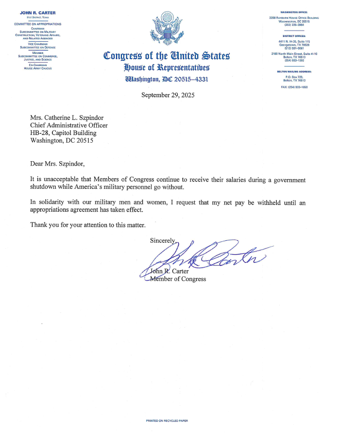 Last week, House Republicans passed a clean continuing resolution, with no partisan riders, that would've kept the government open until November 21, 2025. This bill would've allowed the government to operate at previously agreed-upon funding levels that Democrats and Republicans negotiated in March, while continuing negotiations for 2026 funding. Instead, Democrats failed to support the clean CR through the Senate, where seven Democratic votes are required for passage, leaving the government in a shutdown that prevents America's military, federal workers, and contractors from receiving pay.