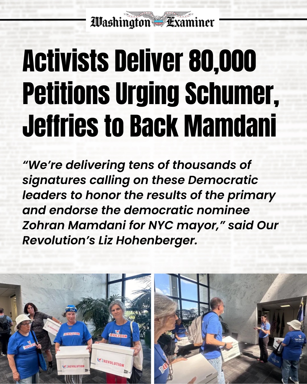 Unions and the grassroots are lined up behind Mamdani and now our voices need to push Schumer and Jeffries over the line to give him their endorsement, Our Revolution organizer Liz Hohenberger told Washington Examiner. The pressure is on and we won’t let up until we get Zohran across the finish line to fight for affordable housing, groceries, and transportation for New Yorkers. |