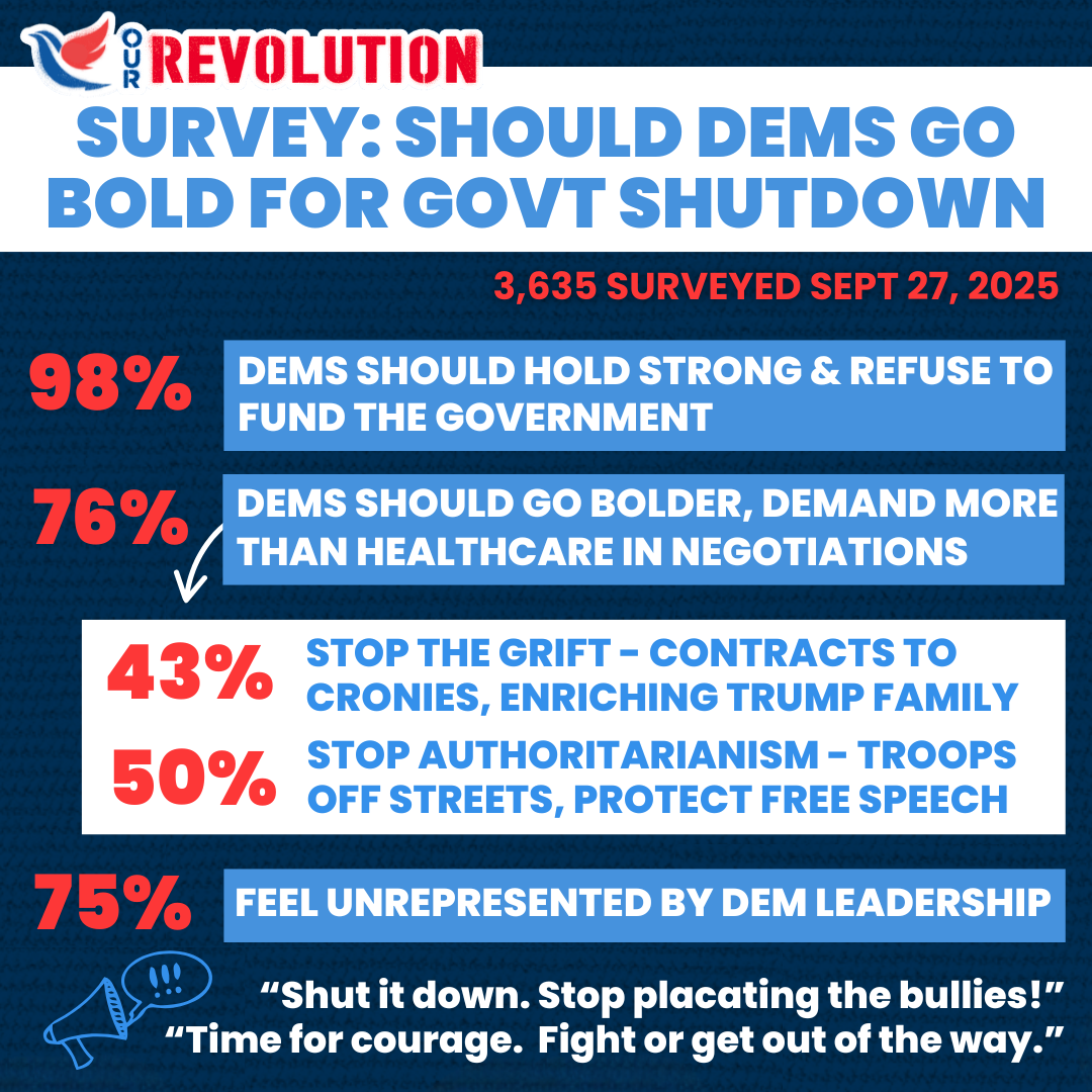 As Democrats in Congress use their leverage to shut down Trump’s corrupt government, Our Revolution is mobilizing our nationwide movement to Fight Trump & the Oligarchs at every turn.