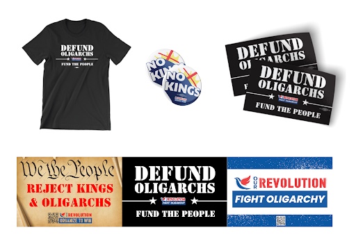 As we gear up for No Kings events nationwide, now is the time to pick up some Defund Oligarchy Merch ahead of October 18!