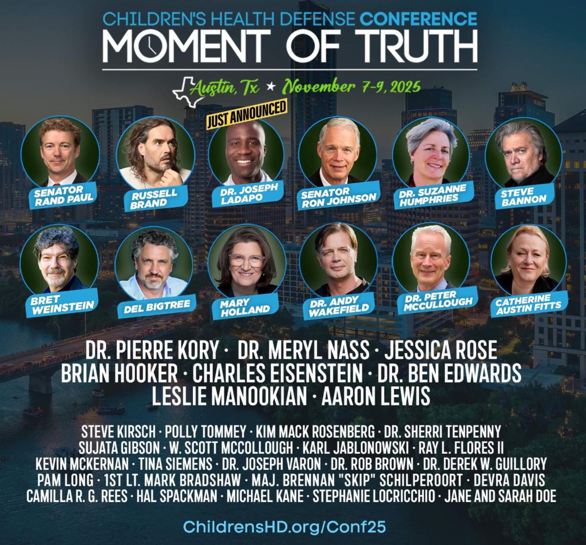 Dr. Joseph Ladapo and Dr. Sherri Tenpenny have officially joined the lineup for CHD’s Moment of Truth conference in Austin, Texas, November 7–9!