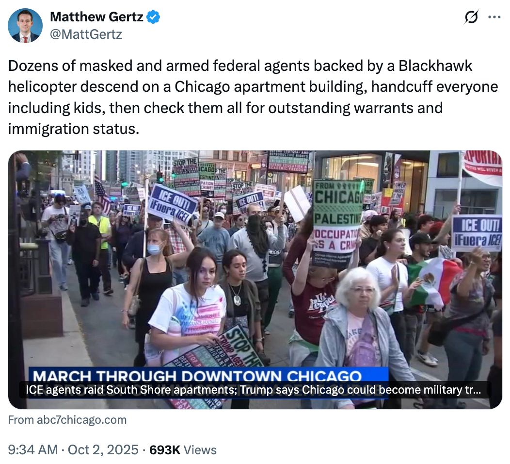 On Thursday we learned that an entire team of ICE agents swarmed a Chicago apartment building with vans and helicopters and arrested every family who lived there until they proved their citizenship.