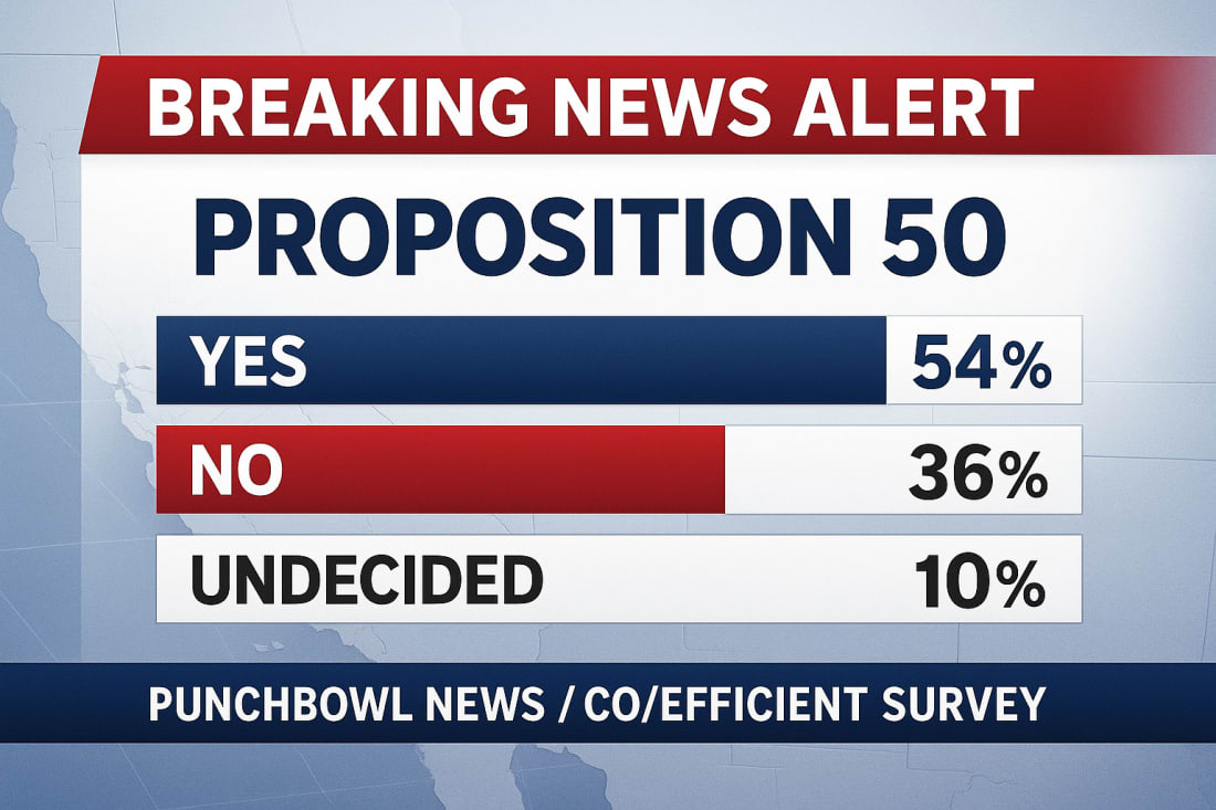 This content is available for free to all subscribers. But you really should consider a paid subscription. This unlocks our afternoon e-mails, our Saturday “What is Jon Reading” e-mail, and analysis on breaking news. Normally a subscription is a modest $7 a month or just $70 for the year. When you add it up, it’s like 8 cents every time to break the pay wall! *Breaking News* New Survey Put Out By Punchbowl News Shows Prop 50 At 54% Likely SupportA slight majority favors shifting from an independent commission-drawn map to one that is written to help Democrats take control of Congress, according to Punchbowl News reporting of this new survey…