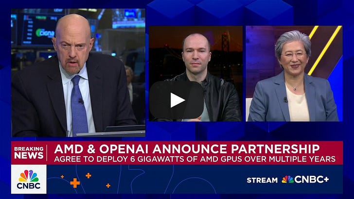 AI Chip Rivalry Heats Up: This deal positions AMD as a key OpenAI supplier amid Nvidia’s $100 billion investment and OpenAI’s recent $300 billion Oracle cloud pact, which drove OpenAI to a $500 billion-valuation.