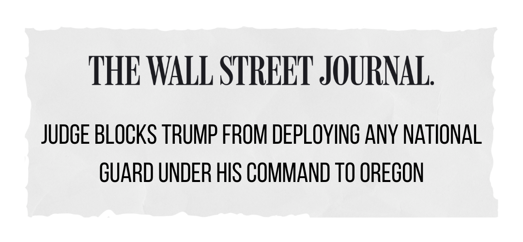 There is a sliver of good news: a federal judge blocked Trump’s attempt to send National Guard troops from Texas and California into Portland — an outrageous maneuver to insert other states’ troops into Democratic-led cities. But the administration is appealing right now, trying to set a dangerous precedent.