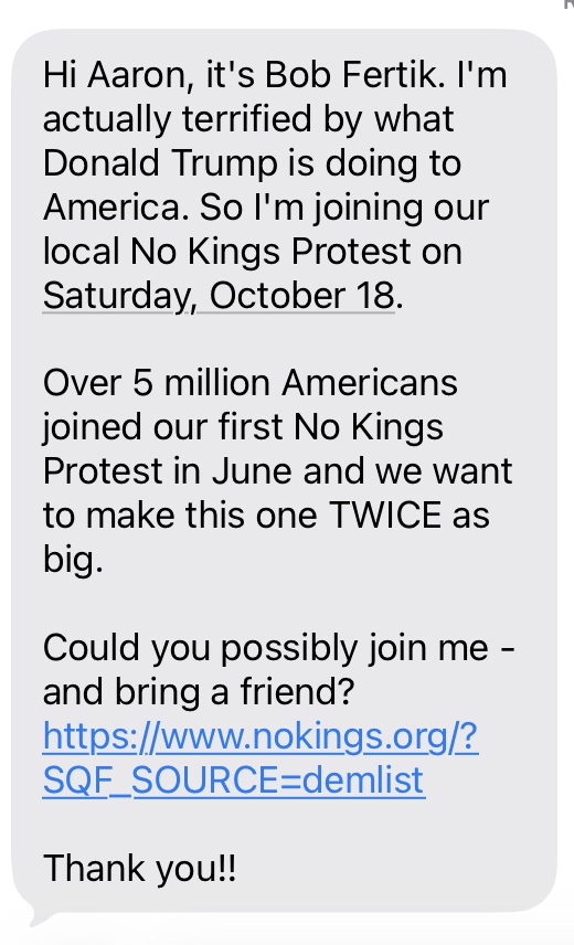 On Saturday 10/18, let's turn out 10 million protesters to make No Kings the largest protest in history!