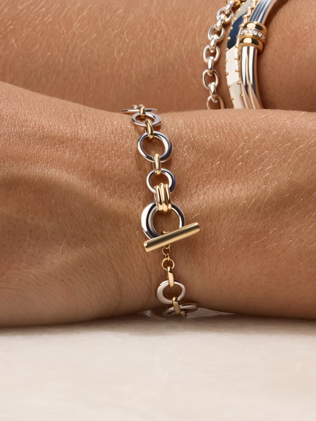 Timeless craftsmanship meets a contemporary twist in our latest collection. Explore modern mixed metal designs and reimagined classics with bracelets wrapped in vibrant gemstones.