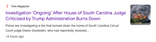 Yesterday, a liberal South Carolina Circuit Court judge who prevented the Trump DOJ from accessing critical voter data, lost her home in a fire that is being investigated as arson following weeks of death threats she received her ruling.