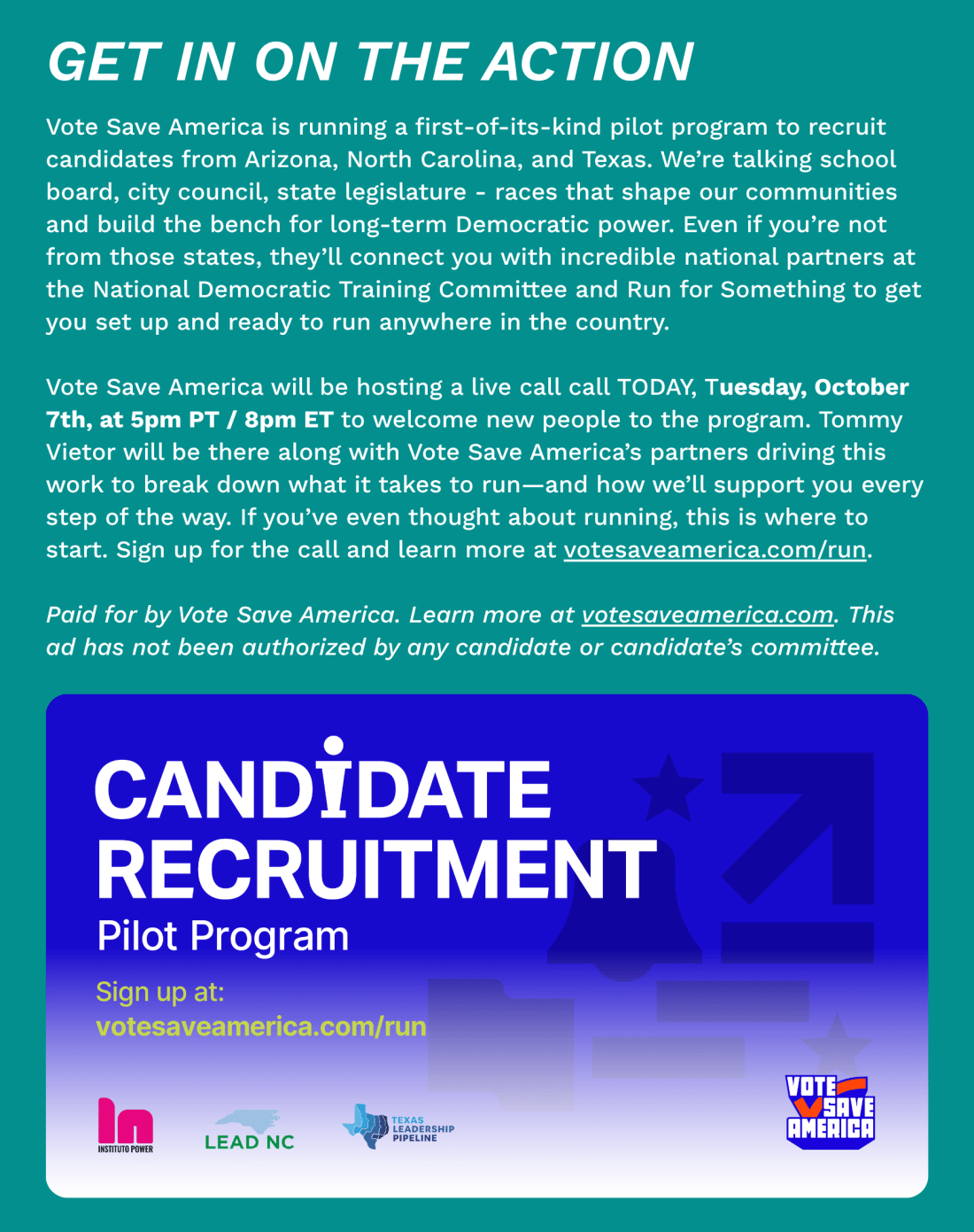 Trump’s team may try to hide these dirty details in inky darkness. But eventually, as one veteran D.C. reporter put it, “the truth emerges.” WHAT ELSE?Today marks two years since Hamas staged the surprise terror attack on Israel that killed some 1,200 people. Since then, Israel has reportedly killed or injured over 10 percent of the population in the Gaza Strip. Negotiations to end the war are ongoing, amid recent cautious optimism that peace could come soon. I recommend reading this remarkable piece from USA Today: “Visualizing two years of death and devastation in Gaza.” The Supreme Court appears set to strike down a law banning conversion therapy for gay and transgender minors in Colorado — i.e., the process of using therapy to try to change kids’ sexual or gender identity. The case, which focuses on a therapist’s desire to counsel patients dealing with gender identity in line with her religious views, has the potential to shape the future of free speech in America and have major consequences for LGBTQ rights. Colorado and over 20 other states have banned conversion therapy, which an United Nations once said could amount to torture. Furloughed federal workers may not be entitled to backpay after the shutdown ends after all, according to a White House memo. Lawmakers of both parties disputed this assertion, and Democrats in particular argued that the law doesn’t allow Trump to pick and choose who gets paid. This threat is Trump’s latest attempt to pressure Democrats to reopen the government by holding federal workers’ livelihoods hostage, while Republican lawmakers refuse to negotiate to extend healthcare subsidies. On that note, staffing shortages are causing flight delays at airports across the country. There were zero air traffic controllers at Hollywood Burbank Airport in California yesterday, and airports in Newark, Phoenix and Denver also saw delays due to staffing. More than 5,800 flights were delayed yesterday, according to a flight-tracking website. A group of Chicago journalists and unions sued the Trump administration, alleging that federal agents used “extreme brutality” against protestors during recent demonstrations. “Never in modern times has the federal government undermined bedrock constitutional protections on this scale or usurped states’ police power by directing federal agents to carry out an illegal mission against the people for the government’s own benefit,” the lawsuit reads. How dangerous is HHS Secretary Robert F. Kennedy Jr. to the nation’s health? Well… SIX former surgeons general are all raising the alarm together about his loony, anti-scientific, wild-eyed, hold-my-beer-style medical ideas. “Never before have we issued a joint public warning like this,” the group wrote in a Washington Post op-ed. “Rather than combating the rapid spread of health misinformation with facts and clarity, Kennedy is amplifying it. The consequences aren’t abstract. They are measured in lives lost, disease outbreaks and an erosion of public trust that will take years to rebuild.” Trump claimed he has “never heard of” Bad Bunny, the third-most streamed artist in the world. “I don’t know who he is, I don’t know why they’re doing it — it’s, like, crazy,” Trump told Newsmax last night. What does he think about Bad Bunny being chosen for the NFL Halftime Show? “It’s absolutely ridiculous.” Shield your eyes, kids: Trump and Vice President JD Vance returned to TikTok after a monthslong hiatus. “To all of those young people of TikTok, I saved TikTok, so you owe me big,” Trump said in a video. Remember: Congress voted to ban the app due to national security concerns. I wonder how Republicans feel about this??? I doubt we’ll ever know! Light at the End of the Email…Progressive activist David Adler and other Americans were released from Israeli prison, after they were detained for taking part in the Global Sumud Flotilla carrying aid to the Gaza Strip. “They will be sleeping through the night, and their flights home are arranged for the morning,” Rep. Ro Khanna (D-CA) tweeted. Adler spoke with Zeteo shortly afterwards about his detention. Solar and wind power around the world outpaced electricity demand this year, according to a report from an energy think tank. Renewable sources of energy also created more power than coal for the first time in recorded history, the report found. Take that, dirty rocks! Three professors in the U.S. won the Nobel Prize for their work on quantum mechanics. The scientists are associated with UC Berkeley, Yale University and UC Santa Barbara. The Trump administration has targeted all of these universities, so this is a great example of why the U.S. shouldn’t do that! I think Trump is just jealous because he can’t get a Nobel… Young Germans are meeting up in public parks to eat pudding with forks, as part of a viral social media trend. It’s called “Pudding mit Gabel,” which literally translates to “pudding with fork.” Why are the kids doing this? “We thought it was kind of funny that someone had the idea to do it,” one recent attendee said. “And we thought, ‘Why not?’” The people yearn for community! Do you love the undead? AMC Networks is auctioning off over 1,000 prop items from the hit series “The Walking Dead” this month for its 15-year anniversary. Some eye-catching items include the guitar played by Glenn Rhee (Steven Yeun), an original 1971 Pontiac Tempest featured in the series premiere, and *spoiler* a pickaxe used by Carol Peletier (Melissa McBride) to kill her abusive husband in the first season. Experts are confused as to why Duke, an 11-year-old golden retriever, likes to steal items from around his household and drag them to his bed. The list includes china plates, a 12-pack of toilet paper, and a lamp. “Every night and nap time, he will go get something to sleep with — something weird,” his owner said. That’s a good boy. You