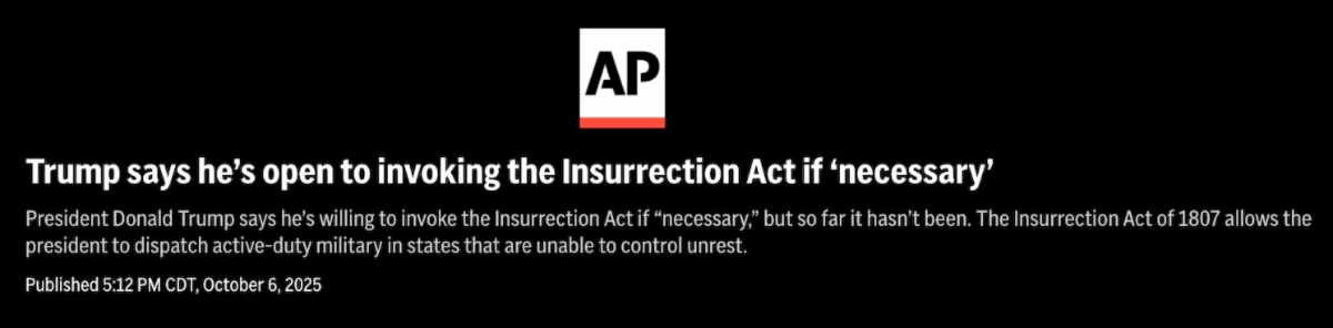 He even suggested invoking a law from 1807 called the “Insurrection Act” to provide a shaky legal basis for suspending civil liberties and deploying the U.S. military on American soil against the American people.