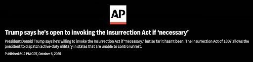 He even suggested invoking a law from 1807 called the “Insurrection Act” to provide a shaky legal basis for suspending civil liberties and deploying the U.S. military on American soil against the American people.