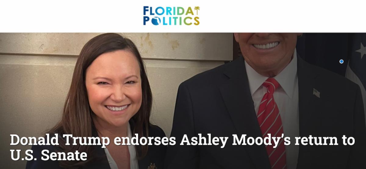 Donald Trump took power again. And Moody owes her position in the United States Senate to Trump’s “complete and total” endorsement.