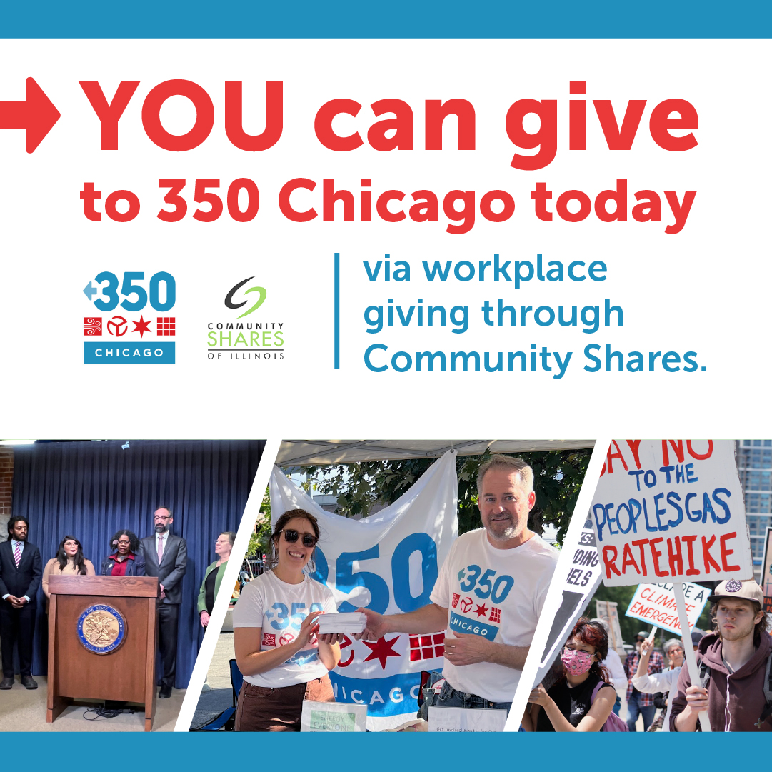 This is where you come in to help - Share your support of 350 Chicago with your friends, families, and co-workers by encouraging them to select us for their payroll deduction gift this year.