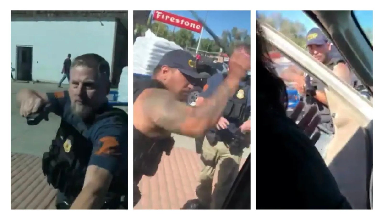ICE agents immediately drew their firearms as they approached the car, screaming at the driver. Then, an agent came from behind the vehicle and began banging on the window with a police baton, shattering the glass all over the man, the mother, and their newborn baby inside.