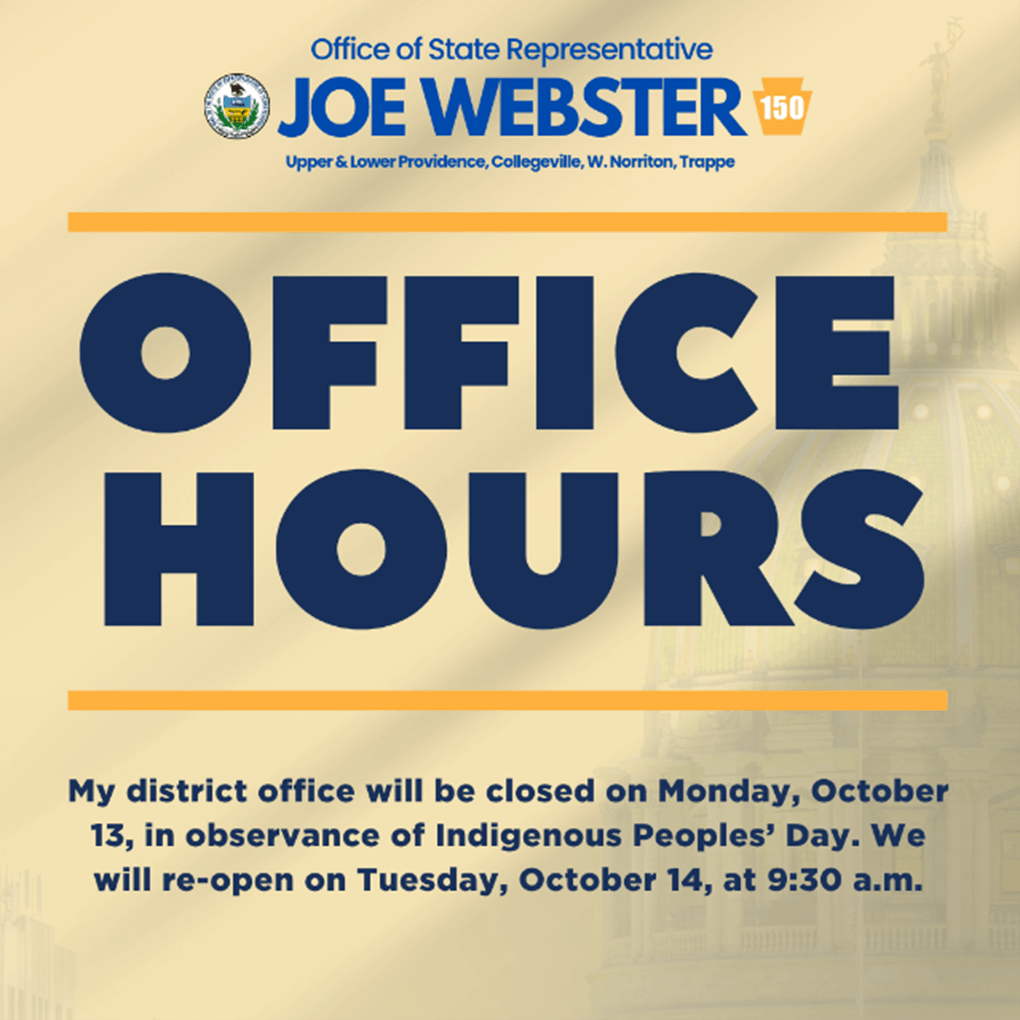 Dear Neighbor, I hope you are well. As we move through October, I want to share information with you about upcoming events in the area and resources that may be helpful to you. Below, you’ll find details on my free Inclusive Post-High School Resource Fair with The Arc Alliance on January 25, my office hours for the upcoming holiday, key election dates, road work news, and more! As always, I hope you find the information below useful. | Important Updates/Highlights | Inclusive Post-High School Resource Fair | I’m proud to announce that I’m partnering with The Arc Alliance and a team of local volunteers to bring a FREE Inclusive Post-High School Resource Fair to Hall A of the Greater Philadelphia Expo in Oaks on Sunday, January 25th from 1 p.m. to 5 p.m. We are seeking vendors for this event and interested parties can apply here. Ideal vendors currently serve high school students with IEPs and 504 plans and offer post‑secondary opportunities such as employment, internships, apprenticeships, transitional services, continuing education, or supported living programs. A comprehensive list can be found below. - Post-Secondary Education: Institutes that offer Higher Education programs for IDD/A