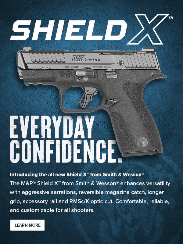 Smith & Wesson’s M&P Shield X offers aggressive serrations, reversible mag catch, longer grip, accessory rail, and RMSc/K optic cut.
