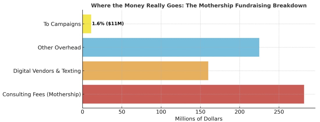⏱️ 4.5 min readListening to a Podcast I Was Blown Away By What I LearnedEvery election cycle, we’re told that democracy is on the line — that one more small donation will make all the difference. Millions of Americans respond, believing they’re funding candidates and causes they care about. But what if the real winners in this process aren’t the candidates or voters? I was listening recently to Chuck Todd’s podcast, where he interviewed Adam Bonica, a university professor who has spent years dissecting the mechanics of political fundraising. Bonica writes a sharp, data-driven Substack called Data for Democracy, and what he’s uncovered about how money actually moves through our political system is deeply unsettling. One of his recent pieces dives into the left’s mass email fundraising machine. I’ve tried here to summarize his findings in one plain-spoken column. I wanted to talk about this because what he describes is a pretty grotesque look into a massive political fundraising apparatus that effectively gets people to make donations, but the donors have no clue how little of their contributions are getting to the intended candidates or causes. A Fundraising Empire Built on Emotion and DeceptionYou’ve seen the messages: “We’re falling short!” “Chip in $10 to save democracy!” Bonica’s analysis centers on a Washington consulting shop called Mothership Strategies. This firm has turned political panic into a business model, soaking small donors who believe their contributions go directly to campaigns. Mothership is an entrenched part of a liberal fundraising machine. Since 2018, Mothership and a cluster of PACs tied to it have raised roughly $678 million. About $159 million flowed from those PACs back to Mothership, and $282 million went to the firm from every client on its roster. When the dust settled, only 1.6 percent of what was raised reached candidates or committees. It’s staggering. From Party Insiders to Digital MiddlemenMothership was founded by Greg Berlin and Charles Starnes, two veterans of the Democratic Congressional Campaign Committee. They left the DCCC with its digital playbook — panic, deadlines, guilt — and built a business around it. The result is a web of PACs with populist names such as Stop Republicans, Progressive Turnout Project, and End Citizens United. They look like independent grassroots outfits but feed the same revenue stream. The Numbers Don’t LieAccording to Bonica’s research Federal filings show Mothership collected $282 million in fees, and another $22.5 million went to a texting vendor that pushes out the avalanche of “Last Chance!” appeals. The system is designed to pay the operators first, vendors second, and campaigns — if anything’s left — last. After salaries, ad buys, and “digital infrastructure,” just $11 million of the $678 million raised went to actual campaigns. For every dollar a retiree sends to “protect democracy,” ninety-eight cents go to overhead. Why No One Stops ItThere is no doubt that everyone in Democratic Party leadership knows this happens. Yet the firm still works for major Democratic-aligned groups such as House Majority PAC and for establishment-backed candidates. The relationship persists because it serves both sides: consultants get rich, the party receives money, and a fresh donor list. Each manipulative subject line — “We’re begging you — chip in before midnight!” — erodes trust. The party that lectures about transparency is running a digital shell game. A Mirror for Both PartiesAnd conservatives shouldn’t gloat. The Republican world has its own consultant economy built on small-donor manipulation. Just like a bunch of money from liberal donors isn’t getting to liberal candidates, the same is going on with Republicans, no doubt. ProPublica detailed a GOP fundraiser who pleaded guilty after the PACs he ran pulled in nearly $10 million and sent just $48,400 to real campaigns. Republicans have also run the same emotional plays — pre-checked recurring donation boxes, guilt-driven appeals, and even the NRCC’s now-infamous “DEFECTOR” checkbox (this was were they provided, per the law, a box to check if you did not want to have automatic deductions for donations — and they proceeded to put on message attacking anyone who would have the nerve to check the box. So, Does It Matter?It matters a lot. When political professionals pocket hundreds of millions raised in the name of civic virtue, they’re not only betraying donors — they’re poisoning faith in the system itself. Outrage has become a business model, and idealism the raw material. If a corporation misled customers this way, prosecutors would line up. In politics, it’s treated as a strategy. This isn’t just financial misconduct — it’s moral fraud. Millions of well-meaning citizens on both sides believe they support candidates and causes they care about. They’re not. They’re fueling a self-enriching machine that makes sure that the consultant class makes a ton of money, and in the meantime the candidate’s campaign is getting only a fraction of what has been contributed by a well-meaning donor. It’s atrocious. It’s nauseating. And it’s happening every day. Both parties need to clean house. If Democrats actually believe in democracy, they’ll start with this racket. If Republicans care about honesty, they’ll police their own. And if neither does, voters have every right to demand it — loudly. Because when ninety-eight cents of every donated dollar disappears into the “Mothership,” the only thing being saved is the consultants’ lifestyle. You’re currently a free subscriber to So, Does It Matter? California Politics! For the full experience, upgrade your subscription. See how much more you get with an inexpensive, paid subscription, but clicking the button below! Support me in providing hard-hitting, clear-eyed analysis of California politics. I am beholding to no