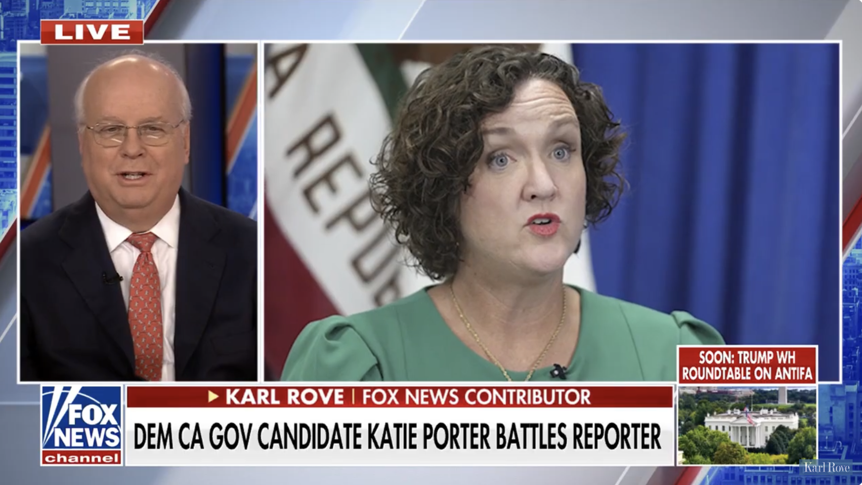 Fox News contributor Karl Rove and 'The Five' co-host Jessica Tarlov respond to California Democratic gubernatorial candidate Katie Porter sparring with a reporter on 'The Story.'