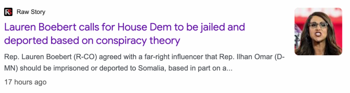 Boebert didn’t just spew her usual nonsense — she went on a podcast with far-right extremist Benny Johnson and called for Congresswoman Ilhan Omar’s arrest. Together, they pushed a vile, racist conspiracy claiming a “source” inside the Department of Homeland Security had “evidence” Omar married her brother to gain citizenship.