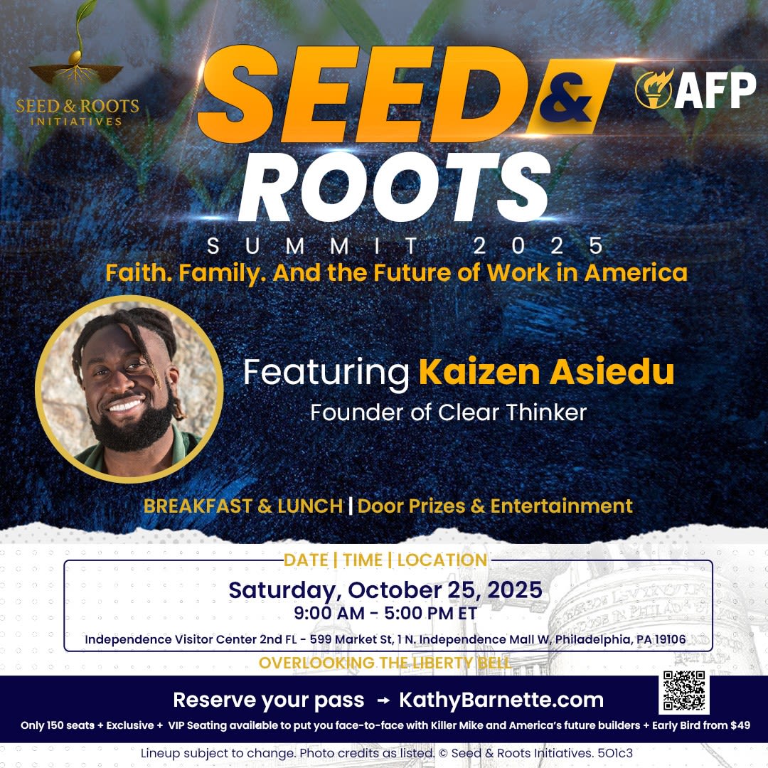 We’re honored to welcome Kaizen Asiedu as a featured speaker at the Seed & Roots Summit 2025 — Faith. Family. And the Future of Work in America. 🗓 Saturday, October 25, 2025 Why this matters: Attached below is our official full speaker promo. Stay connected: Website: www.KathyBarnette.com Twitter: / kathy4truth Audacy: The Kathy Barnette Show Instagram: / kathy4truth Facebook: https://tinyurl.com/Kathy4TruthFB |