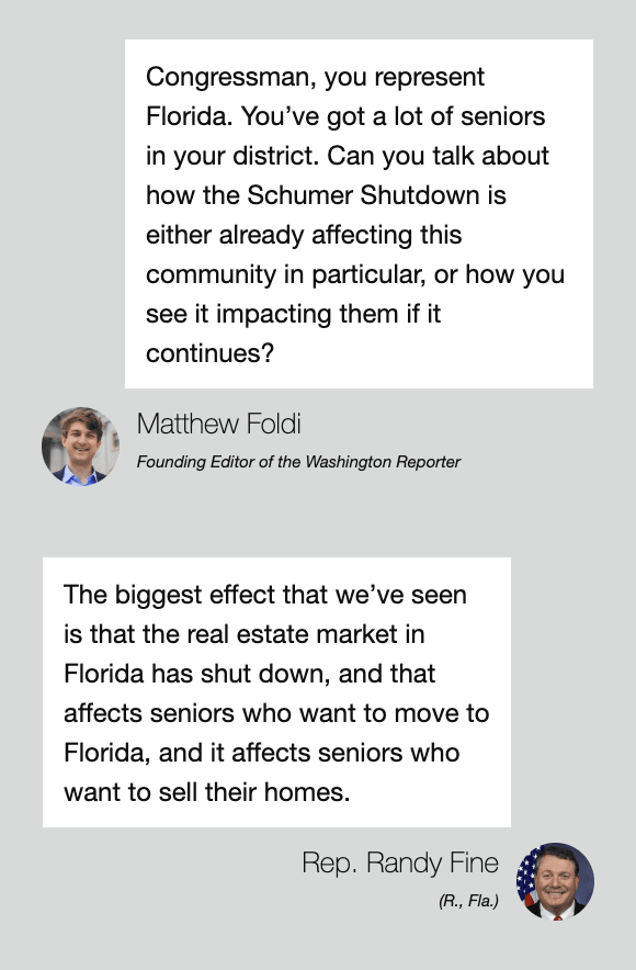 If you have a tip you would like to anonymously submit, please use our tip form — your anonymity is guaranteed! INTERVIEW: Rep. Randy Fine explains why he wants the Nobel Peace Prize named after Trump and why the Schumer Shutdown is devastating Florida real estateby Matthew Foldi If President Donald Trump successfully brings peace to the Middle East — in spite of Hamas terrorists blowing up his deadline of last weekend for a deal — Rep. Randy Fine (R., Fla.) doesn’t just want him to win the Nobel Peace Prize this year; he wants the prize named after Trump. “If Trump can make that happen, that it’s an extraordinary achievement, far greater than the Nobel Prize,” Fine said in an interview with the Washington Reporter. “They shouldn’t just give him the Nobel Prize. They should just rename it and call it the Trump Prize.” But, given Hamas’s unprovoked assault and rampage across Israel on October 7th, nothing is guaranteed, even though Israel and Palestinian terrorist leaders have both ostensibly agreed to Trump’s peace deal. “There won’t be a lot of sleep in the Fine household until Monday,” Fine said. “The idea that these people who have been held in unbelievable conditions by these Muslim terrorists might be released is extraordinary. If President Trump can bring the hostages home and bring a lasting peace to the Middle East, it will be the greatest diplomatic achievement in American history by far.” Heard on the Hill