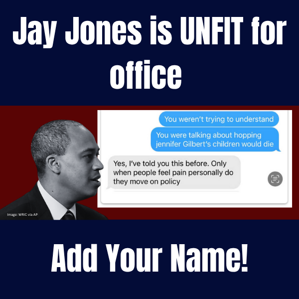 P.S. Jay Jones didn’t just cross a line – he obliterated it. Anyone who fantasizes about killing their opponent’s children should be tar-and-feathered – not elected as Virginia’s TOP law enforcement officer. Add your name now to demand Jay Jones drop out in SHAME and DISGRACE!