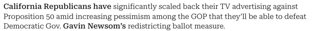 Below is our Top Ten List of Winners and Losers for the Week. This feature available to all of our subscribers, free and paid. However, at the bottom of the column, past the firewall is something extra, just for paid subscribers as a thank you! ⏱️ 6 minute read This is where we look over state and local politics (or national with a California angle), and highlight people (or groups) that have had some solid wins, or who have just had a really rough week. If you want to make your own suggestions for this list — just send in an email (you can just hit reply to any of these e-mails) and suggest away! I promise to keep confidential the people making suggestions! Oh yes, thank you to our thousands of subscribers, and if you know something you think would like this, forward it along! Here we go… Top Ten Winners & Losers This Week in California Politics⬇️ LOSER: DEMOCRATIC GUBERNATORIAL CANDIDATE KATIE PORTERFormer Congresswoman Katie Porter had a rough week—and only herself to blame. During what should have been a routine CBS interview, she melted down when faced with basic, fair questions from reporter Christina Watts, who was simply doing her job. Porter’s defensive outburst revealed a fragile temperament and a candidate seemingly accustomed to the gentle treatment she gets from liberal outlets like MSNBC. Making matters worse, another video surfaced showing Porter dropping an f-bomb on a staffer for walking into a camera shot. For a candidate already battling an image problem, it was a one-two punch of bad optics and worse judgment. ⬆️ WINNER: THE CAMPAIGN FOR THE CA VOTER ID INITIATIVEMomentum is clearly building behind the campaign to qualify the California Voter ID Initiative. Signature gathering is booming across the state, with both volunteers and paid circulators working full tilt. The campaign has even mailed out mass quantities of hand-addressed envelopes containing petitions—a smart grassroots touch. And here in my own town of Yorba Linda, I’m seeing tables set up at nearly every grocery store. Californians clearly want voter ID on the ballot. You can get involved here. ⬆️ WINNER: SAN JOSE MAYOR MATT MAHANSan Jose Mayor Matt Mahan is carving out a rare lane in California politics—an independent-minded Democrat willing to challenge Gavin Newsom from the center. While most big-city mayors echo Sacramento’s progressive orthodoxy, Mahan has dared to question Newsom’s priorities on homelessness, housing, and public safety. Politico even dubbed him Newsom’s “new headache.” By standing up to the far-left machine that dominates state politics, Mahan is emerging as the kind of pragmatic Democrat leader that has become very rare in that party. ⬇️ LOSERS: THE LOS ANGELES CITY COUNCILThe Los Angeles City Council just voted to hike trash collection rates by nearly 30 percent over the next two years—another stealth tax to bankroll union pay raises and pet projects. Instead of reining in spending or reforming broken departments, city leaders passed the costs to residents already struggling with housing and inflation. To their credit, Councilmembers Nazarian and Rodriguez voted no, and the criminally indicted Curren Price was absent. Once again, taxpayers are footing the bill for City Hall’s political priorities. This city is so jacked up. ⬇️ LOSER: THE BROADER NO ON 50 EFFORTDespite some high-profile opposition, including from Arnold Schwarzenegger, the broader “No on 50” campaign remains outgunned. While Charles Munger Jr. has put in roughly $32 million of his own toward a more nonpartisan opposition effort, other GOP fundraising—though exceeding $10 million—hasn’t come close to matching Newsom’s “Yes” juggernaut. Democrat Tom Steyer just pledged his own $12 million yes effort, putting out this bizarre ad. With weeks to go, Washington’s well-funded GOP infrastructure has been conspicuously quiet, leaving us wondering if they are weighing whether their money is better spent trying to stop the California partisan gerrymander, or used to try to pick up competitive seats elsewhere. Nothing would make this conservative who calls balls and strikes happier than to make the No on 50 Campaign winners next week after a massive cash infusion. ⬆️ WINNERS: CONCEALED CARRY PERMIT HOLDERS IN CALIFORNIAConcealed carry permit holders scored a quiet but significant victory this week as the U.S. Supreme Court agreed to hear a Hawaii case that could strengthen gun rights nationwide. A favorable ruling could also strike down California’s absurd new restriction that bans carrying on publicly accessible private property unless the owner posts a sign allowing it—effectively making self-defense illegal in most public settings. For those who respect both the Constitution and self-defense, relief may finally be on the horizon. ⬇️ LOSER: THE CALIFORNIA TEACHERS ASSOCIATIONThe California Teachers Association managed to turn a sincere effort to confront antisemitism in schools into political mush. Lawmakers had crafted a bill to define and combat antisemitic behavior in classrooms—but after the CTA’s lobbying, it was gutted into feel-good language that accomplishes nothing. The saddest part is watching legitimate organizations that truly oppose antisemitism praise the watered-down bill, afraid to admit they’ve been beaten down by the powerful CTA, which resists any rules of conduct on its members—no matter how heinous the behavior. Once again, union power trumped principle, leaving students unprotected and moral clarity sacrificed to politics. ⬆️ WINNERS: LAW ENFORCEMENT AGENCIES WHO FOUND PALISADES ARSONISTA remarkable coalition of agencies joined forces to track down and arrest Raymond Calixte, the Uber driver accused of deliberately setting the devastating Palisades fire: Bureau of Alcohol, Tobacco, Firearms and Explosives, Los Angeles Fire Department Arson and Counter-Terrorism Section, Los Angeles Police Department Major Crimes