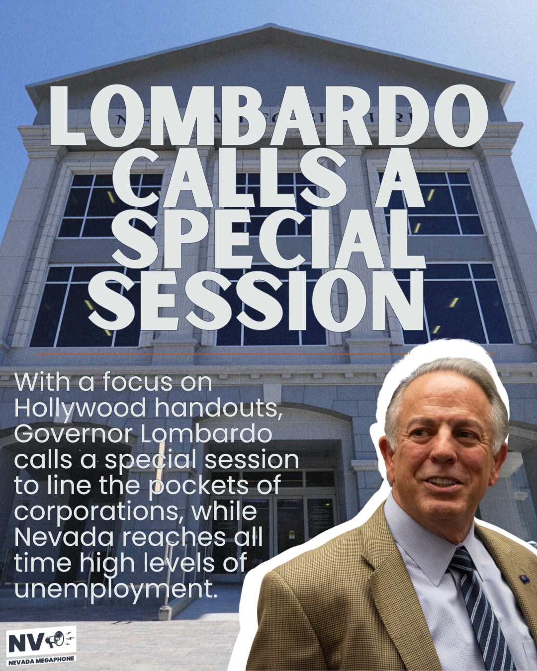 Nevadans need leadership focused on stabilizing our economy, supporting local businesses, and helping working families, not another special session for corporate giveaways. Lombardo should be tackling the economic crisis head-on, not rolling out the red carpet for Hollywood.