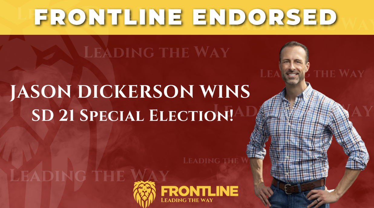 Frontline Endorsed Jason Dickerson Wins Election! The radical left brought in the DNC and their new candidate for Governor, Geoff Duncan, even went “all in” to try to beat Jason Dickerson and flip SD21 for the pro-abortion lobby. |