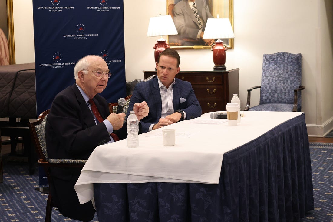 Senator Phil Gramm Presents "Economics for Dummies" More than 50 Hill staffers joined us at the Capitol Hill Club to engage with Senator Phil Gramm on a variety of political and economic topics, including those in his new book The Triumph of Economic Freedom: Debunking the Seven Great Myths of American Capitalism. Thanks to your generosity, we are able to host events like this in the heart of our nation’s capital. This work has real influence — and it’s all thanks to patriots like you who make it possible.