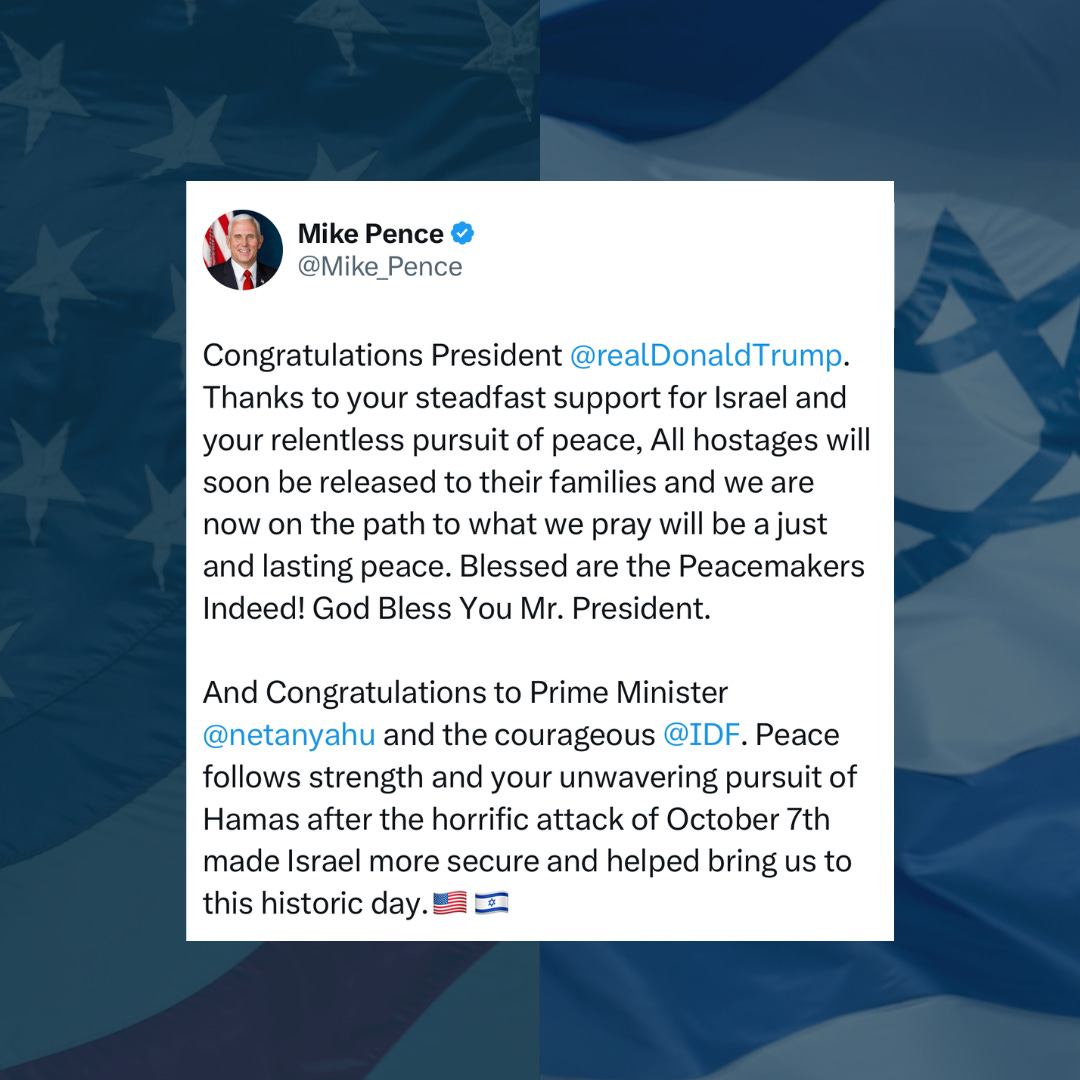 This week we are celebrating the progress made by President Trump in the push for peace in the Middle East. By brokering this historic peace deal, the President has ushered in a new wave of hope for the nation of Israel and the people of Gaza. AAF Founder Mike Pence released the following statement in response to this major step forward: