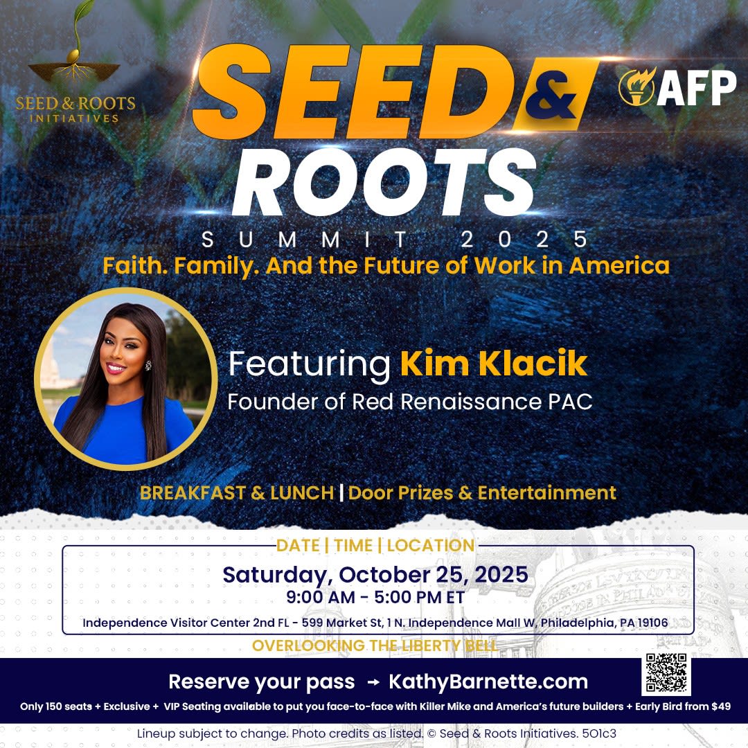 We’re honored to welcome Kim Klacik as a featured speaker at the Seed & Roots Summit 2025 — Faith. Family. And the Future of Work in America. 🗓 Saturday, October 25, 2025 Why this matters: Stay connected: Website: www.KathyBarnette.com Twitter: / kathy4truth Audacy: The Kathy Barnette Show Instagram: / kathy4truth Facebook: https://tinyurl.com/Kathy4TruthFB |